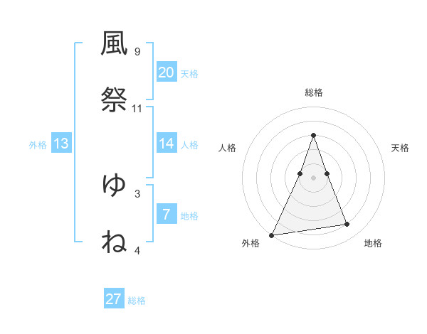 風祭 ゆねさんの外格は13画の5点!