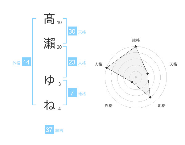 髙瀨 ゆねさんを姓名の画数から五運を鑑定