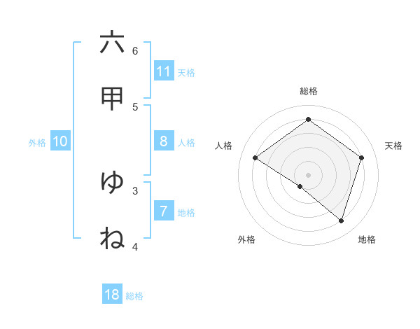 六甲 ゆねさんの天格は11画の4点!