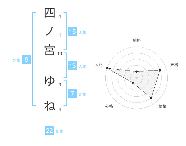 四ノ宮 ゆねさんの総格は22画の1点!