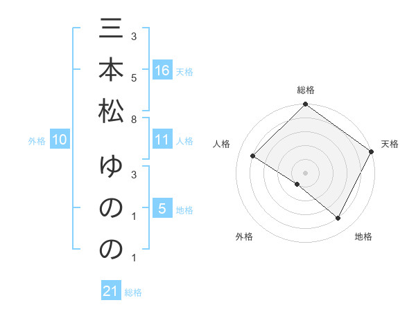 三本松 ゆののさんを姓名の画数から五運を鑑定