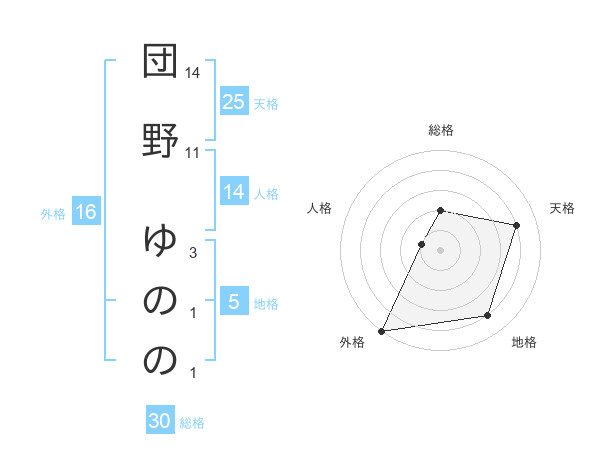 団野 ゆののさんを姓名の画数から五運を鑑定