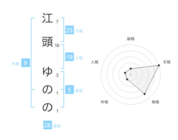 江頭 ゆののさんを姓名の画数から五運を鑑定