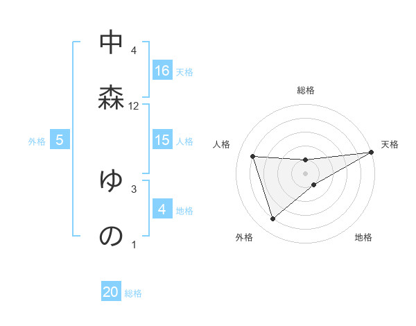 中森 ゆのさんを姓名の画数から五運を鑑定