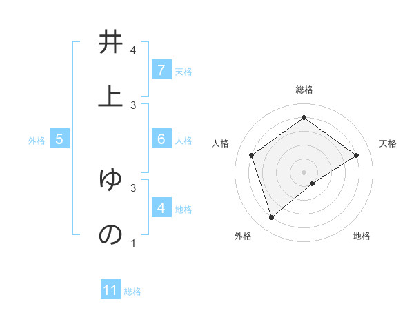 井上 ゆのさんの総格は11画の4点!