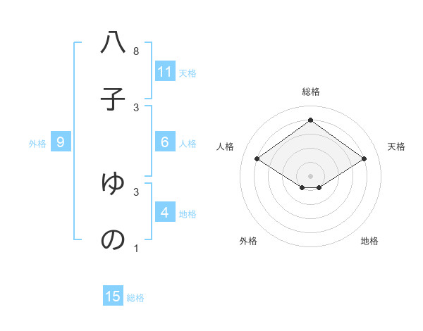 八子 ゆのさんの総格は15画の4点!