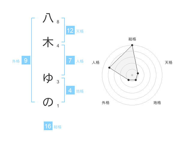 八木 ゆのさんの総格は16画の5点!
