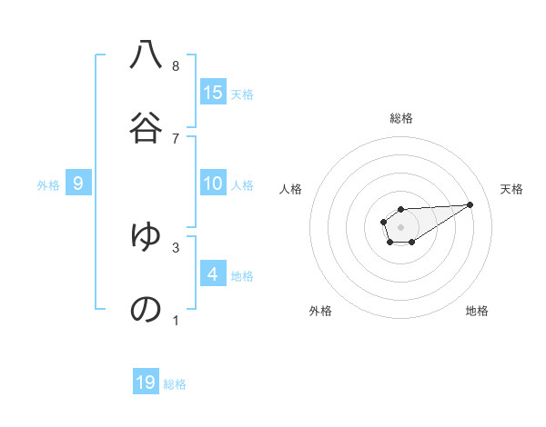 八谷 ゆのさんを姓名の画数から五運を鑑定
