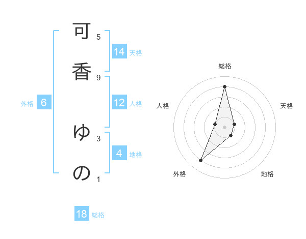 可香 ゆのさんの総格は18画の4点!