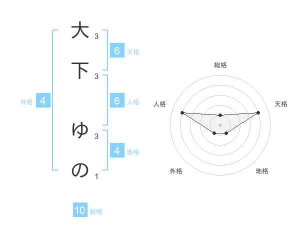 大下 ゆのさんを姓名の画数から五運を鑑定