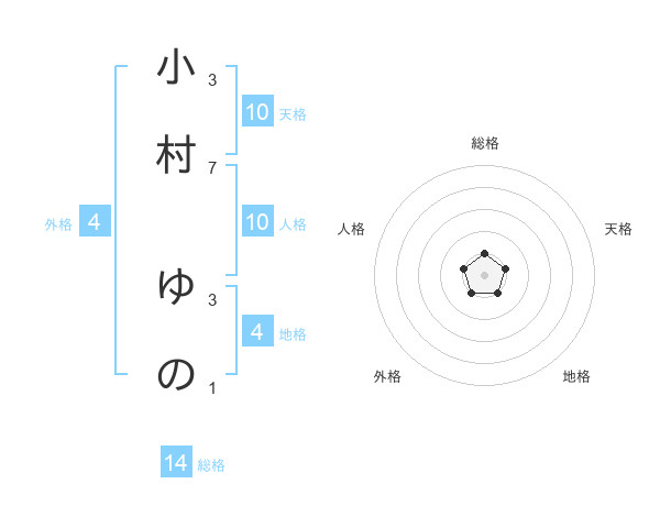 小村 ゆのさんの総格は14画の1点!