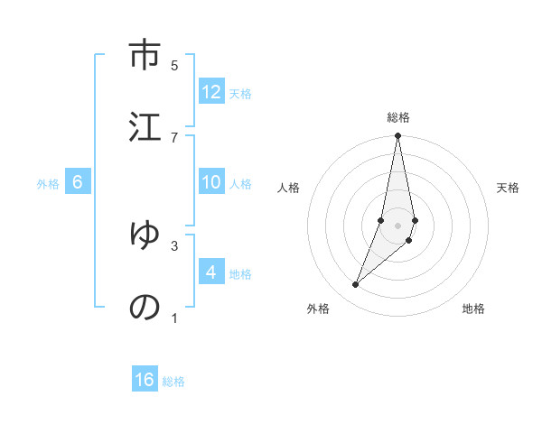 市江 ゆのさんを姓名の画数から五運を鑑定
