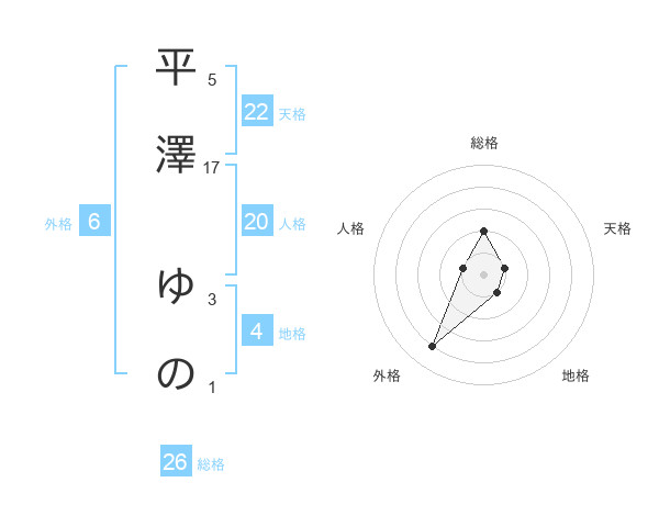 平澤 ゆのさんの総格は26画の2点!