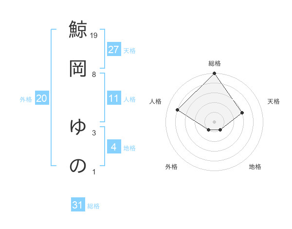 鯨岡 ゆのさんを姓名の画数から五運を鑑定