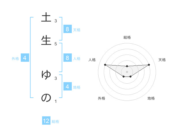 土生 ゆのさんの天格は8画の4点!