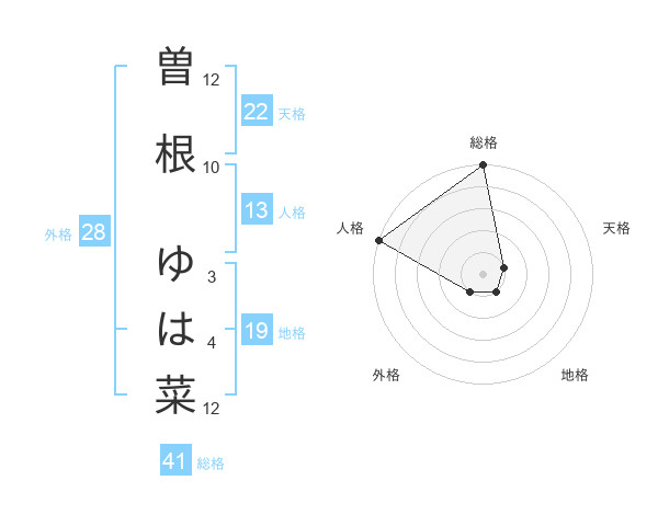 曽根 ゆは菜さんを姓名の画数から五運を鑑定