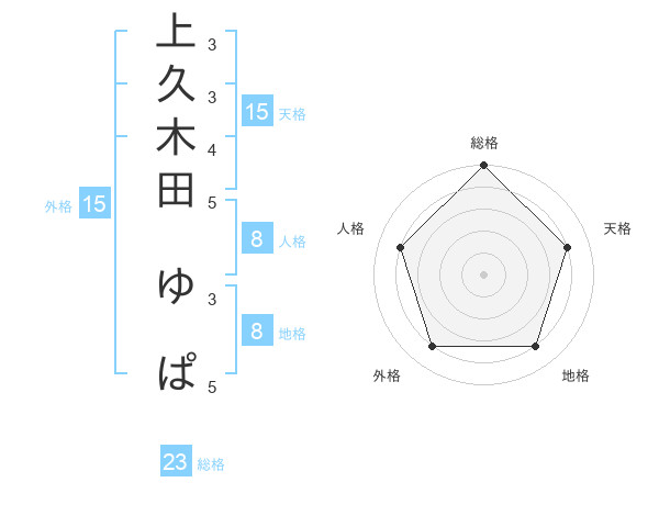 上久木田 ゆぱさんを姓名の画数から五運を鑑定