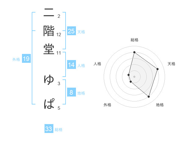 二階堂 ゆぱさんを姓名の画数から五運を鑑定