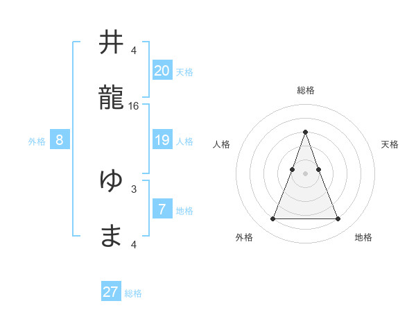井龍 ゆまさんの総格は27画の3点!