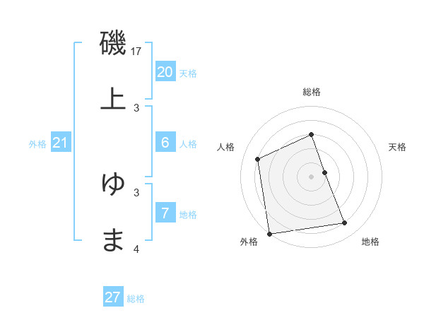 磯上 ゆまさんの総格は27画の3点!