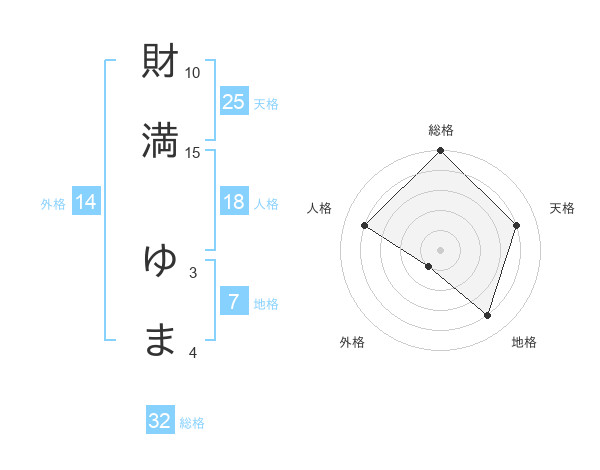 財満 ゆまさんを姓名の画数から五運を鑑定