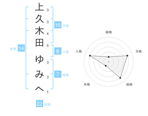 上久木田 ゆみへさんを姓名の画数から五運を鑑定