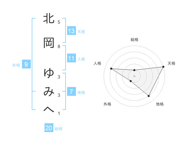 北岡 ゆみへさんを姓名の画数から五運を鑑定
