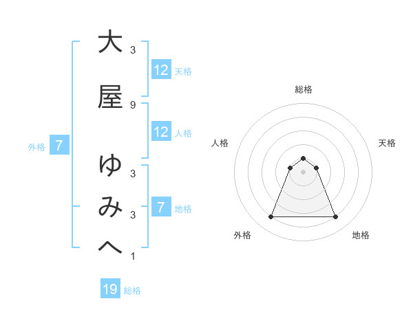 大屋 ゆみへさんを姓名の画数から五運を鑑定