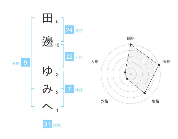 田邊 ゆみへさんを姓名の画数から五運を鑑定