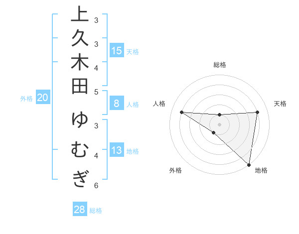 上久木田 ゆむぎさんを姓名の画数から五運を鑑定