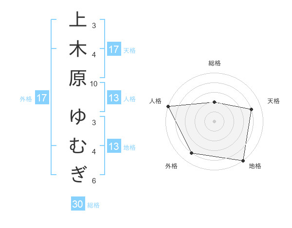 上木原 ゆむぎさんを姓名の画数から五運を鑑定