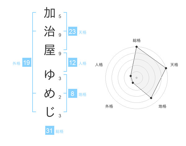 加治屋 ゆめじさんの天格は23画の5点