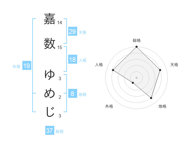 嘉数 ゆめじさんを姓名の画数から五運を鑑定
