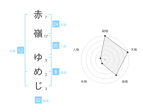赤嶺 ゆめじさんの天格は24画の5点!