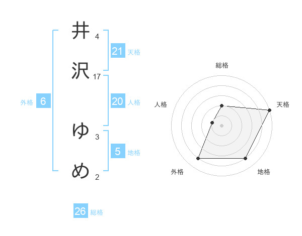 井沢 ゆめさんの総格は26画の2点!