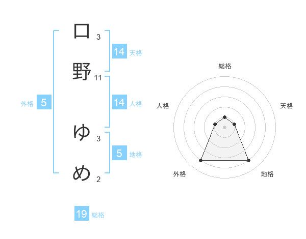 口野 ゆめさんの地格は5画の4点!