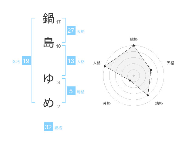 鍋島 ゆめさんの総格は32画の5点!