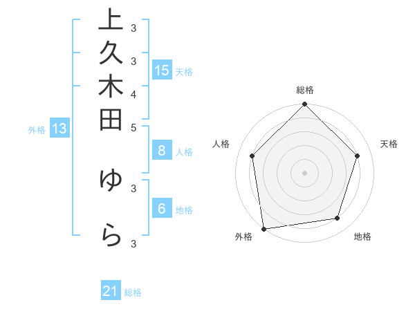 上久木田 ゆらさんを姓名の画数から五運を鑑定