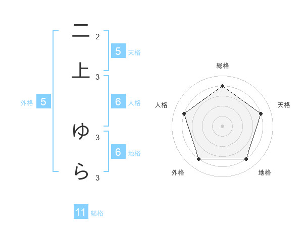 二上 ゆらさんの天格は5画の4点!