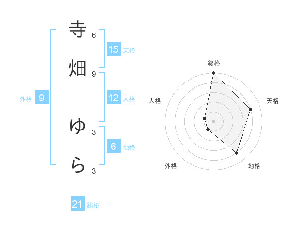 寺畑 ゆらさんの総格は21画の5点!