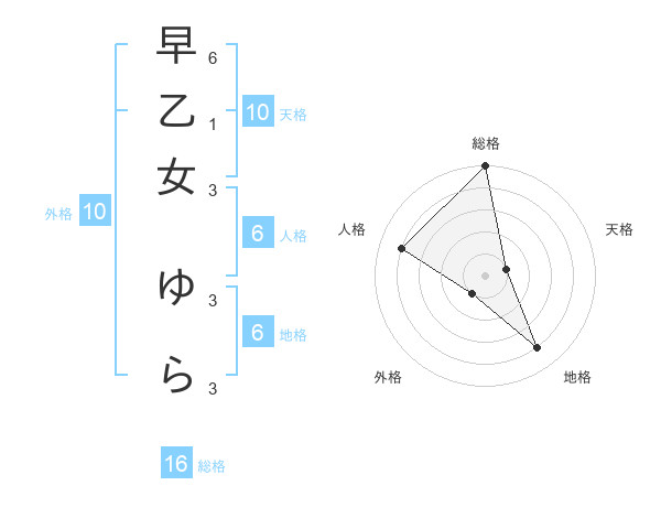 早乙女 ゆらさんを姓名の画数から五運を鑑定