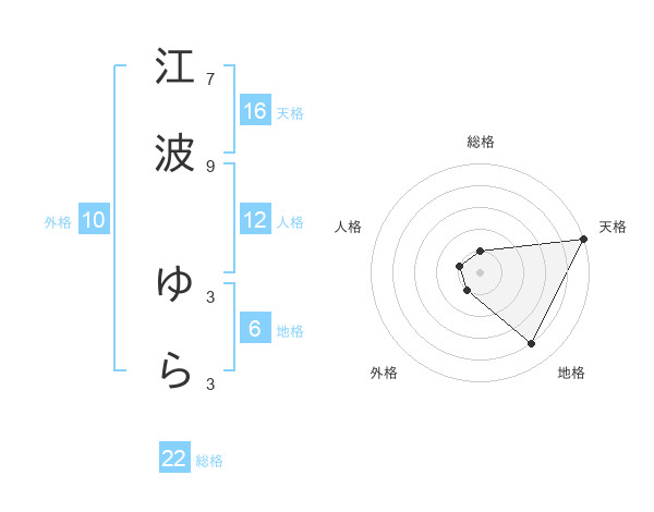 江波 ゆらさんの天格は16画の5点!