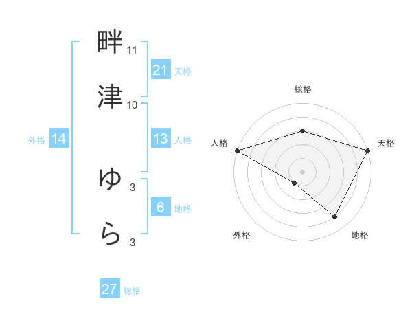 畔津 ゆらさんの総格は27画の3点!