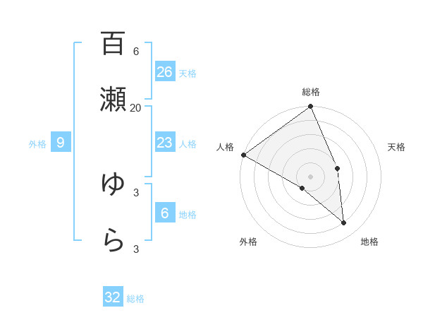 百瀬 ゆらさんを姓名の画数から五運を鑑定
