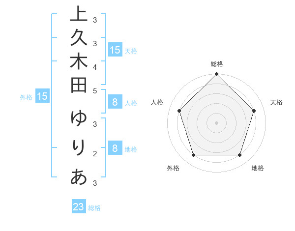 上久木田 ゆりあさんを姓名の画数から五運を鑑定