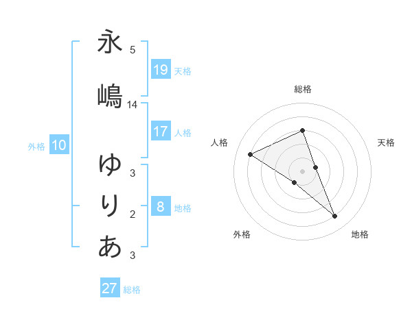 永嶋 ゆりあさんを姓名の画数から五運を鑑定