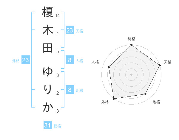 榎木田 ゆりかさんを姓名の画数から五運を鑑定