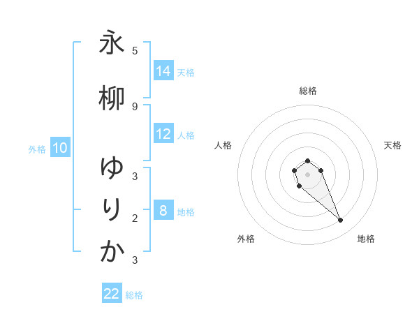 永柳 ゆりかさんの天格は14画の1点!