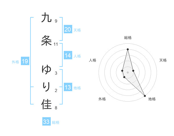 九条 ゆり佳さんの天格は20画の1点!