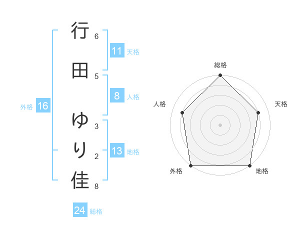 行田 ゆり佳さんの外格は16画の5点!